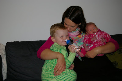 Jag hoppas att jag kanske vågar ge mig ut lite snart med och träffa mina vänner på bortaplan, gå på stan och lite sånt. Har hållit mig på hemmaplan sedan Rebecka föddes. Jag tycker att det har gått rätt bra att vara hemma med båda barnen. Men det tar tid att landa och inse att man är 2-barnsmamma. Det är tufft. Man hinner ingenting. Jag tycker att hur mycket man än plockar och städar så ser det likadant ut senare. Samtidigt ska man leka med Gustav och amma Rebecka, byta blöjor stup i kvarten och försöka äta lite mellan varven. Puuh... Men jag tror att något som påverkat mig mycket och gjort att jag känner att det blev en väldig omställning för mig nu är att Peter hade bara möjlighet att vara hemma med oss i 2 dagar, varav 1 dag på BB. Och just nu så är amningen väldigt strulig. Hon blir inte nöjd på kvällarna. På nätterna och dagarna går det jättebra. Men på kvällarna räcker det inte till. Hon hade bara gått upp 50 gram den här veckan. =(